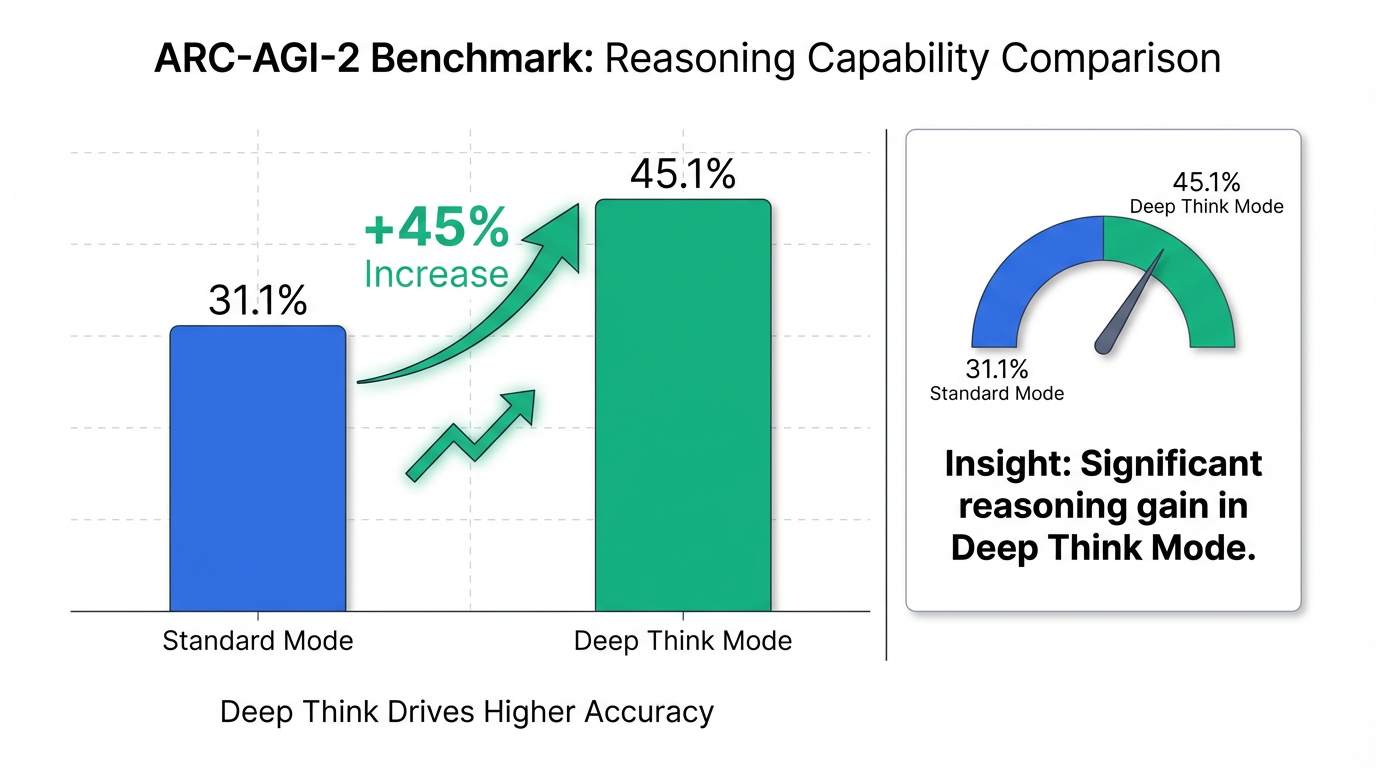 그림 2: 딥 씽크 모드 적용 전후 ARC-AGI-2 벤치마크 성능 비교.