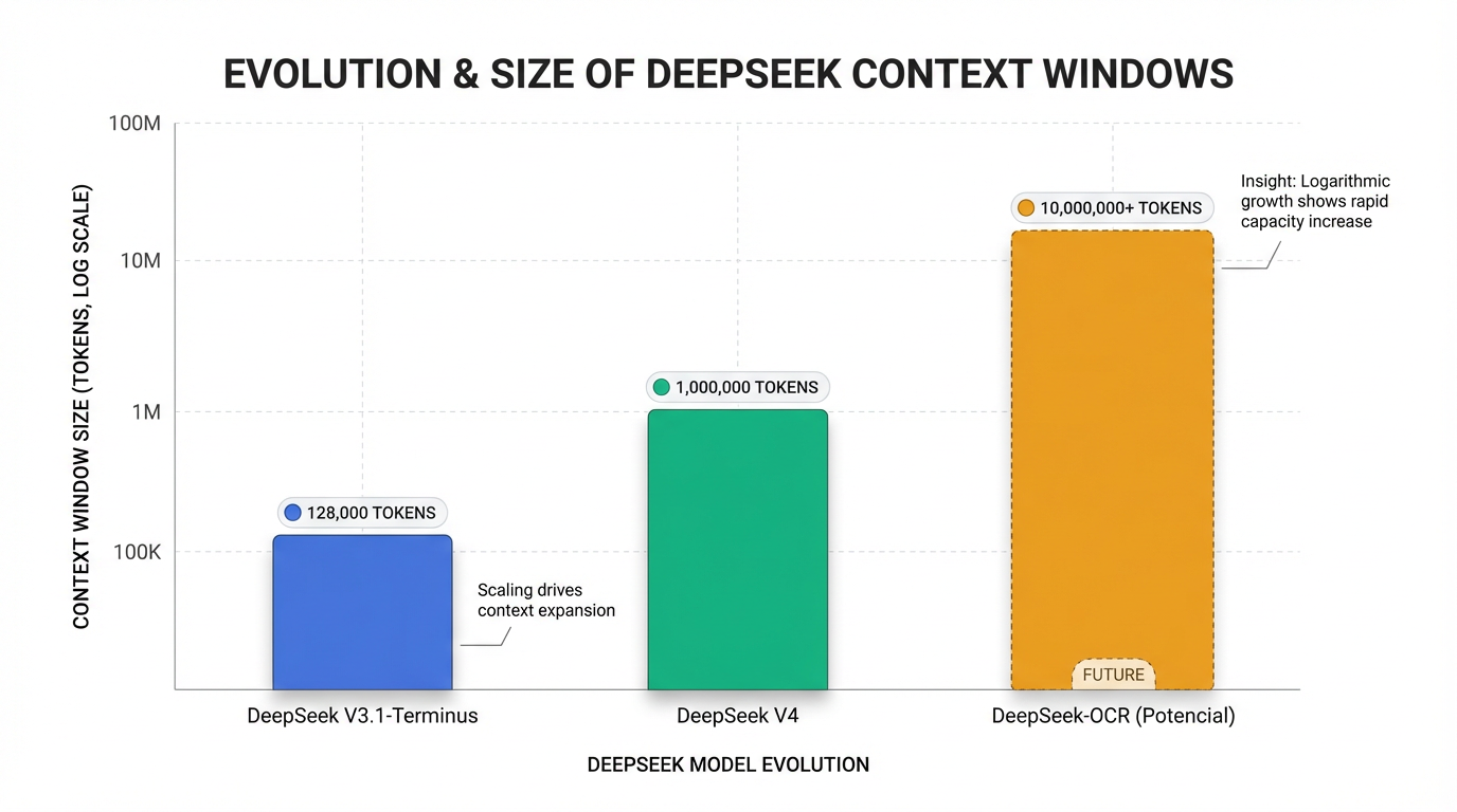 DeepSeek ha anunciado y, según los informes, ha lanzado una versión con una ventana de contexto de un millón de tokens: DeepSeek V4. Se esperaba su lanzamiento a principios de 2026, específicamente entre el primer trimestre y febrero , con informes de su uso datando de finales de enero de 2026 . DeepSeek V4 se posiciona como un modelo fundamental para el razonamiento de grado de producción y la ingeniería de software, buscando redefinir la economía de la IA con un costo de inferencia significativamente menor . Además, la técnica innovadora DeepSeek-OCR, que convierte texto en imágenes para una compresión de datos visuales más eficiente, está allanando el camino para modelos con ventanas de contexto de 10 millones, 20 millones o incluso más, señalando una dirección futura hacia capacidades de contexto aún mayores 11. La comunidad de la IA espera futuras actualizaciones, incluyendo posibles versiones DeepSeek V4 y R2 (el sucesor de DeepSeek R1) 6.