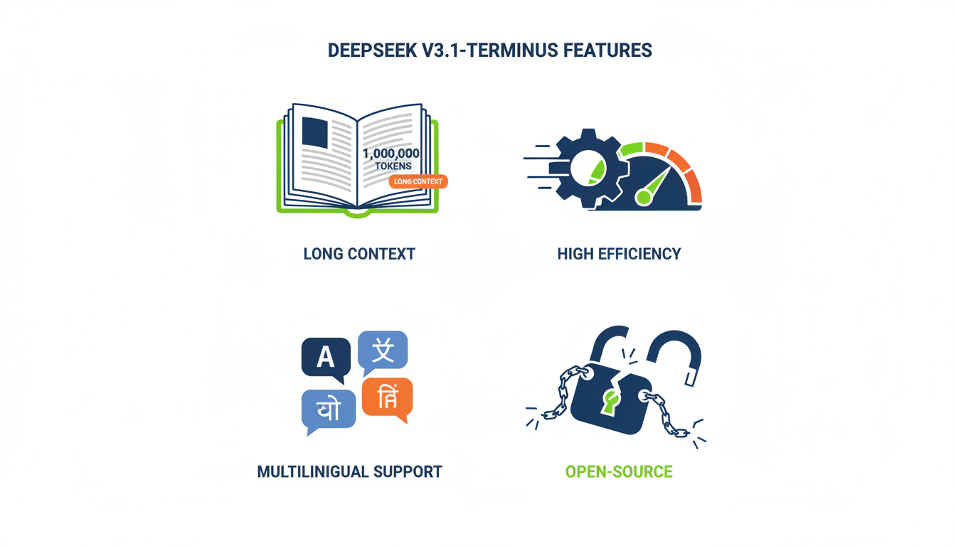 Más allá de su impresionante capacidad de manejo de contexto extendido, el modelo DeepSeek V3.1-Terminus introduce una serie de mejoras y características clave que lo posicionan como una herramienta de IA altamente competitiva y versátil. Se ha logrado una significativa mejora en la eficiencia de inferencia, acompañada de una notable reducción del 38% en las alucinaciones, lo que contribuye a una mayor fiabilidad de sus resultados 1.