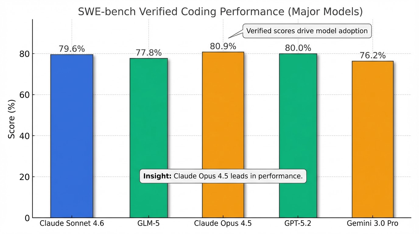 これらのデータから、GLM-5は特にBrowseCompやHumanity's Last Exam (w/ Tools)といったエージェント的タスクの領域で非常に高い性能を発揮し、コーディング能力においてもClaude Opus 4.5やGPT-5.2といった最上位モデルに肉薄していることが分かります。Claude Sonnet 4.6もSWE-bench Verifiedで79.6%とGLM-5を上回るスコアを達成しており、それぞれのモデルが特定の領域で強みを持っていることが見て取れます 。