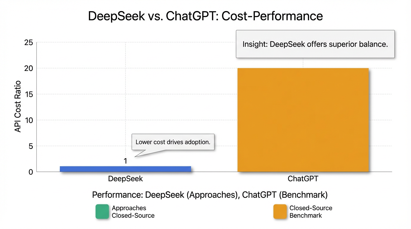 このDeepSeekのモデル群は、卓越した性能に加えて、そのコストパフォーマンスの高さも特筆すべき点です。API利用料は競合するOpenAIのChatGPTなどと比較して約1/20と非常に低く設定されており、「知能の価格破壊」と評されています15。これは、大規模言語モデルの活用における経済的障壁を大幅に引き下げ、より多くの企業や開発者が高性能なAIを利用できる可能性を広げるものです。この戦略は、AI市場におけるDeepSeekの競争優位性を確立し、普及を加速させる重要な要因となっています。