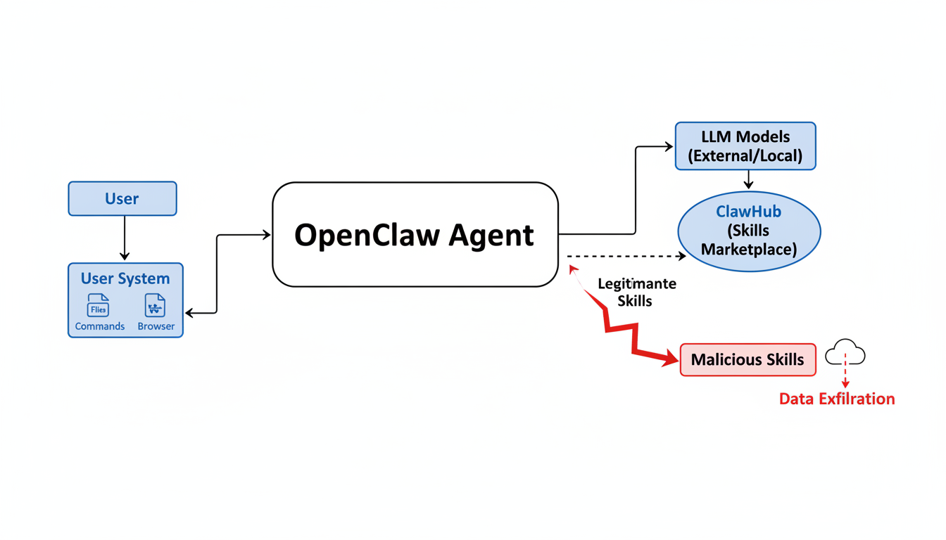 Los primeros indicios de esta debacle se manifestaron alrededor del 13 de febrero de 2026, cuando la empresa de ciberseguridad Hudson Rock identificó el primer caso de robo de datos asociado a un ciberataque de un 'infostealer' en la configuración de un usuario de OpenClaw . Paralelamente, OpenSourceMalware y 1Password alertaban sobre una infiltración masiva de "habilidades" maliciosas en ClawHub, el marketplace de OpenClaw . SOC Prime, el 4 de febrero de 2026, ya había publicado una investigación detallando cómo estas habilidades se estaban utilizando para distribuir malware 5.