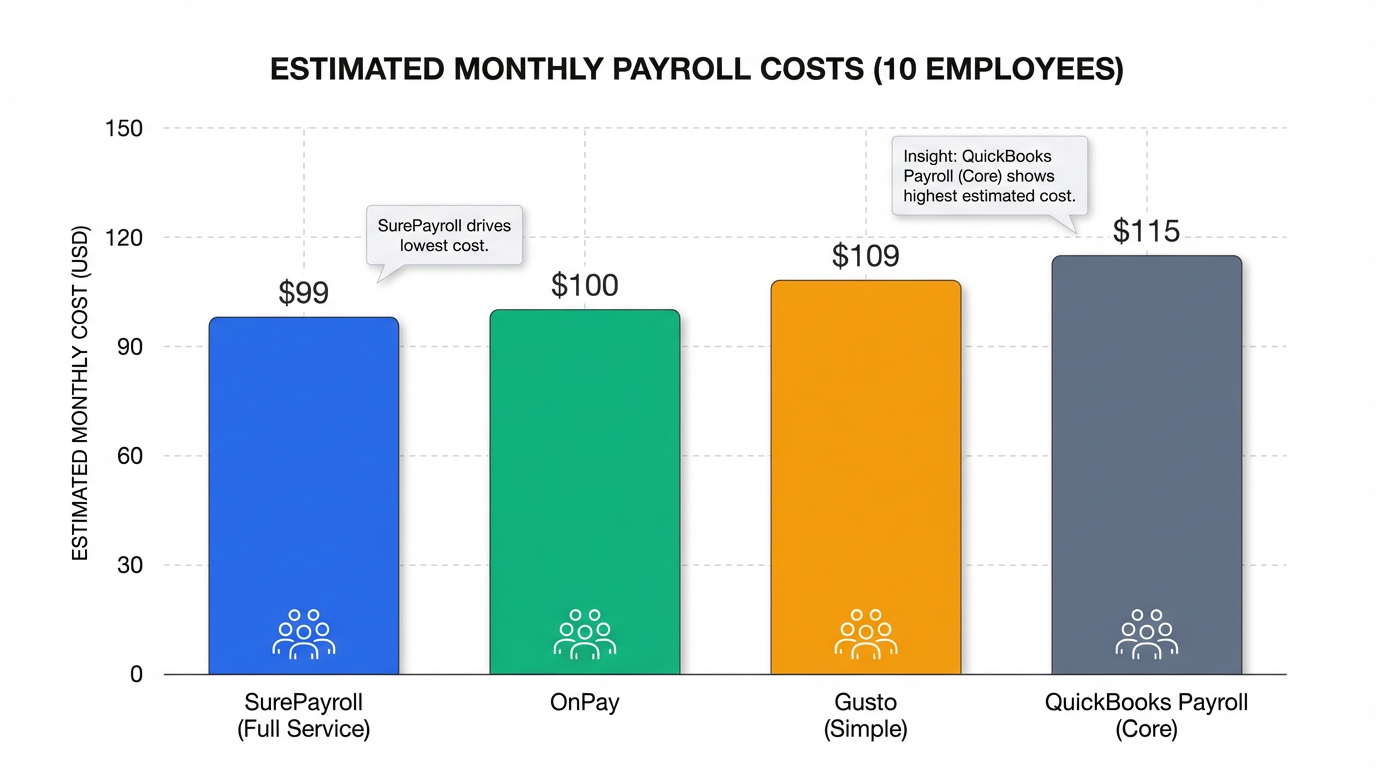 | Business Size | Typical Monthly Base Fee | Typical Per-Employee Fee | Example Providers & Costs |