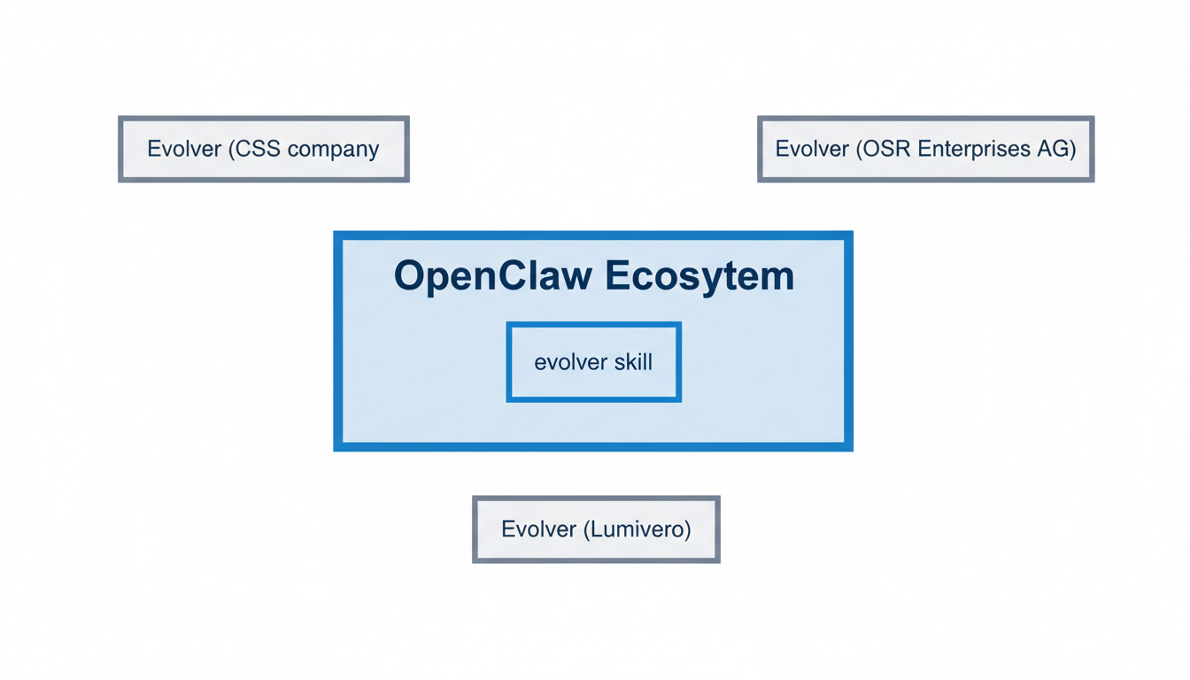 En réalité, le "lien" entre "Evolver" et OpenClaw est interne à l'écosystème de ce dernier. "Evolver" est une "compétence" (skill) créée par la communauté et disponible sur ClawHub, la place de marché d'OpenClaw . Décrite comme un "moteur d'auto-évolution pour les agents IA", cette compétence analyse l'historique d'exécution des agents pour identifier des améliorations et appliquer une évolution contrainte par protocole 4. Les utilisateurs peuvent l'installer via la commande npx clawhub@latest install capability-evolver pour conférer à leurs agents OpenClaw des capacités supplémentaires d'auto-amélioration . Il est important de souligner que cette compétence "evolver" d'OpenClaw n'a aucun lien direct avec les diverses autres entités nommées "Evolver" recensées, telles que l'entreprise de cybersécurité Evolver (entreprise CSS) , l'IA automobile d'OSR Enterprises AG 1, le logiciel d'optimisation pour Excel de Lumivero 9, la plateforme de validation de réseaux mobiles d'Emblasoft 10, ou les services de conseil en IA pour l'impact en entreprise 11.
