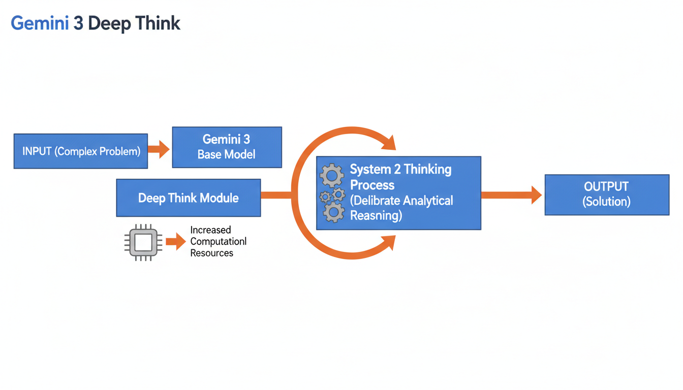 Unlike OpenAI's o1/o3, described as separate, purpose-built reasoning models, Deep Think functions as an enhanced mode of the flagship Gemini 3 Pro. This integrates advanced reasoning directly into a generalist model rather than requiring a distinct model 2. This enhanced inference mode allocates significantly more computational resources for an extended "thinking" process before generating a response 2.