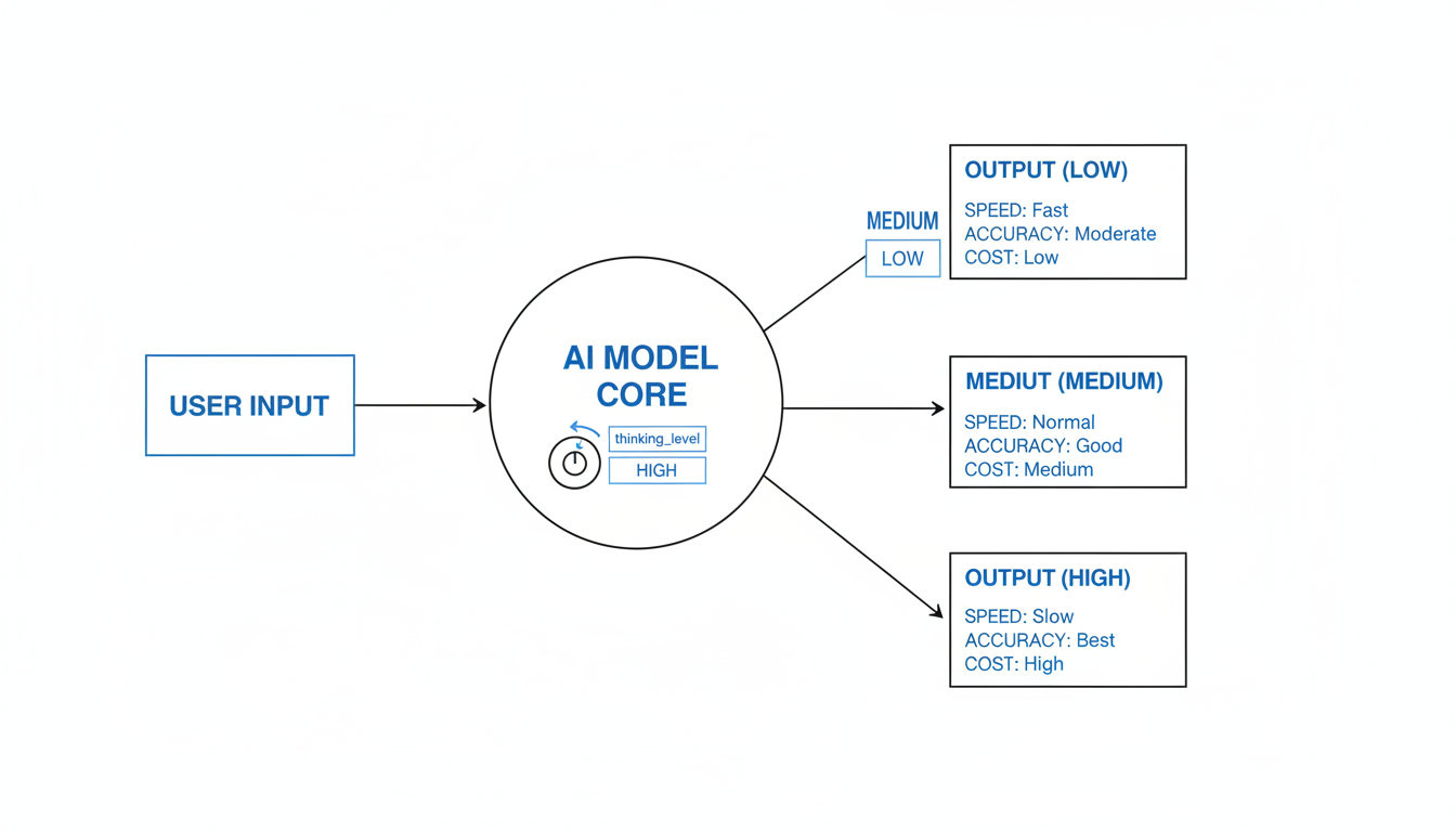さらに、モデルの内部推論プロセスの最大深度を制御するthinking_levelパラメータに新たにMEDIUMが導入されました 4。これにより、ユーザーは費用、パフォーマンス、処理速度のトレードオフをユースケースに合わせて最適化できるようになりました 4。