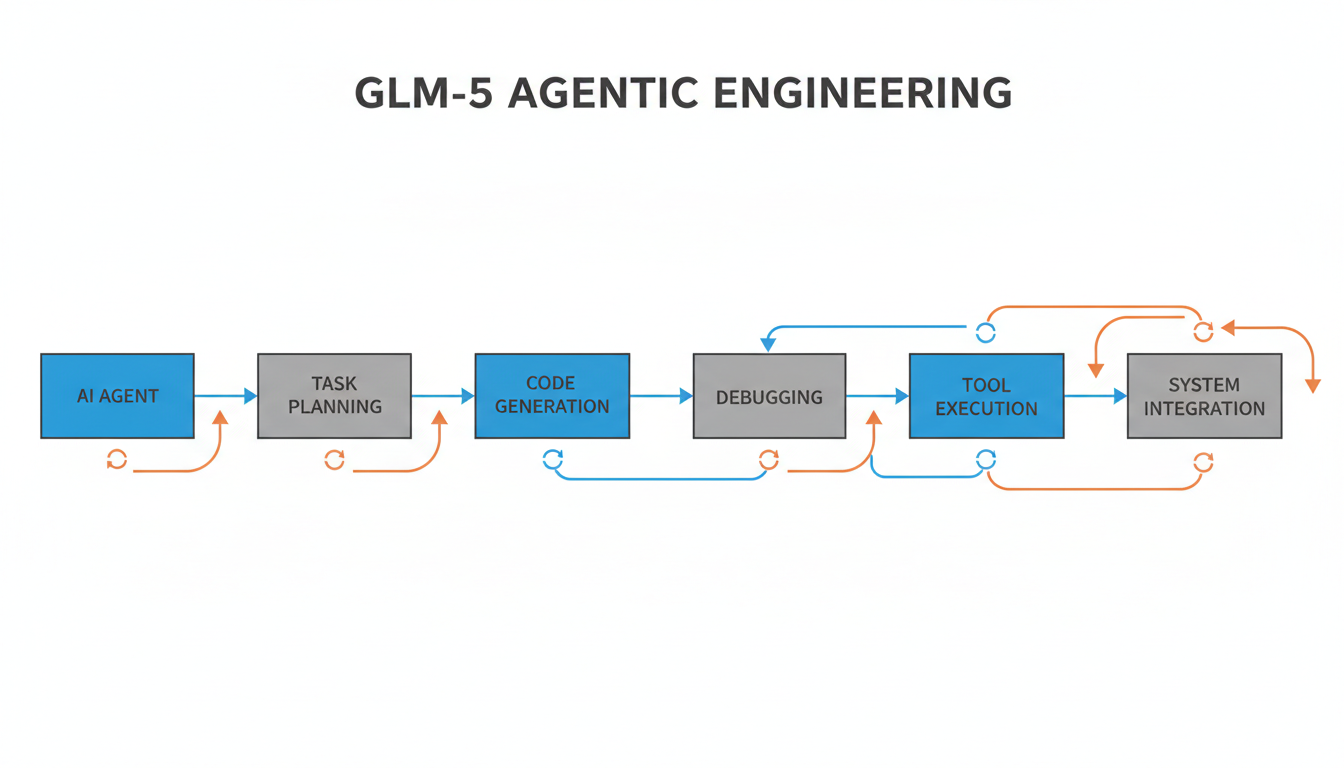 GLM-5は、特に「Agentic Engineering」に焦点を当てて設計されており、複雑なバックエンド設計、アルゴリズムの実装、深いデバッグといった、システム全体のエンジニアリングプロセスを完遂することに重点を置いています 。チャット、コーディング、エージェントタスクに最適化されており、開発者がプロジェクト単位でAIコーディングを進める際の長期的なタスク(設計から実装、デバッグ、リファクタリングまで)を強力にサポートします 。