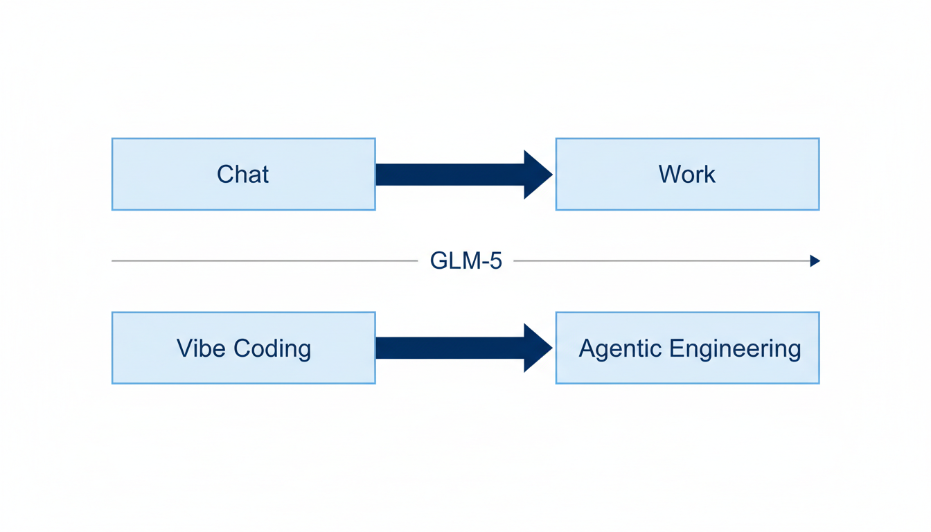 大規模言語モデルGLM-5のリリースは、AIの進化において重要な節目となります。Z.aiは、そのフラッグシップモデルであるGLM-5を通じて、AIの役割を「対話」から「実務」へ、そして「雰囲気によるコーディング」から「自律的なエンジニアリング(Agentic Engineering)」へと転換させることを目指しています。