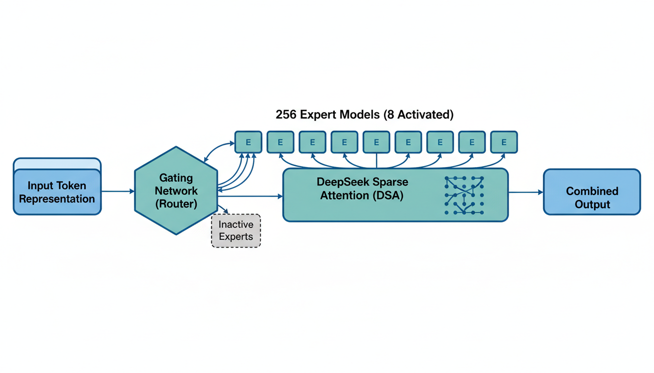 At its core, GLM-5 utilizes a Mixture of Experts (MoE) architecture comprising approximately 745 billion total parameters, with 256 experts, eight of which are activated per token, resulting in a 5.9% sparsity rate and 44 billion active parameters per inference 1. This advanced design is complemented by the integration of DeepSeek Sparse Attention (DSA) for highly efficient handling of extended contexts 3.