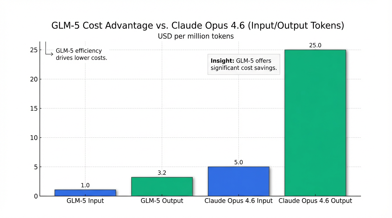 Beyond its raw performance, GLM-5 offers compelling unique advantages. Its open-source release under the MIT license makes it a powerful and accessible alternative to proprietary solutions . Furthermore, GLM-5 presents a disruptive pricing model, being approximately 6x cheaper on input and nearly 10x cheaper on output than Claude Opus 4.6, offering significant cost efficiency 4. Strategically, GLM-5 represents a milestone in China's AI independence, having been trained entirely on Huawei Ascend chips using the MindSpore framework, showcasing self-reliance in AI infrastructure .