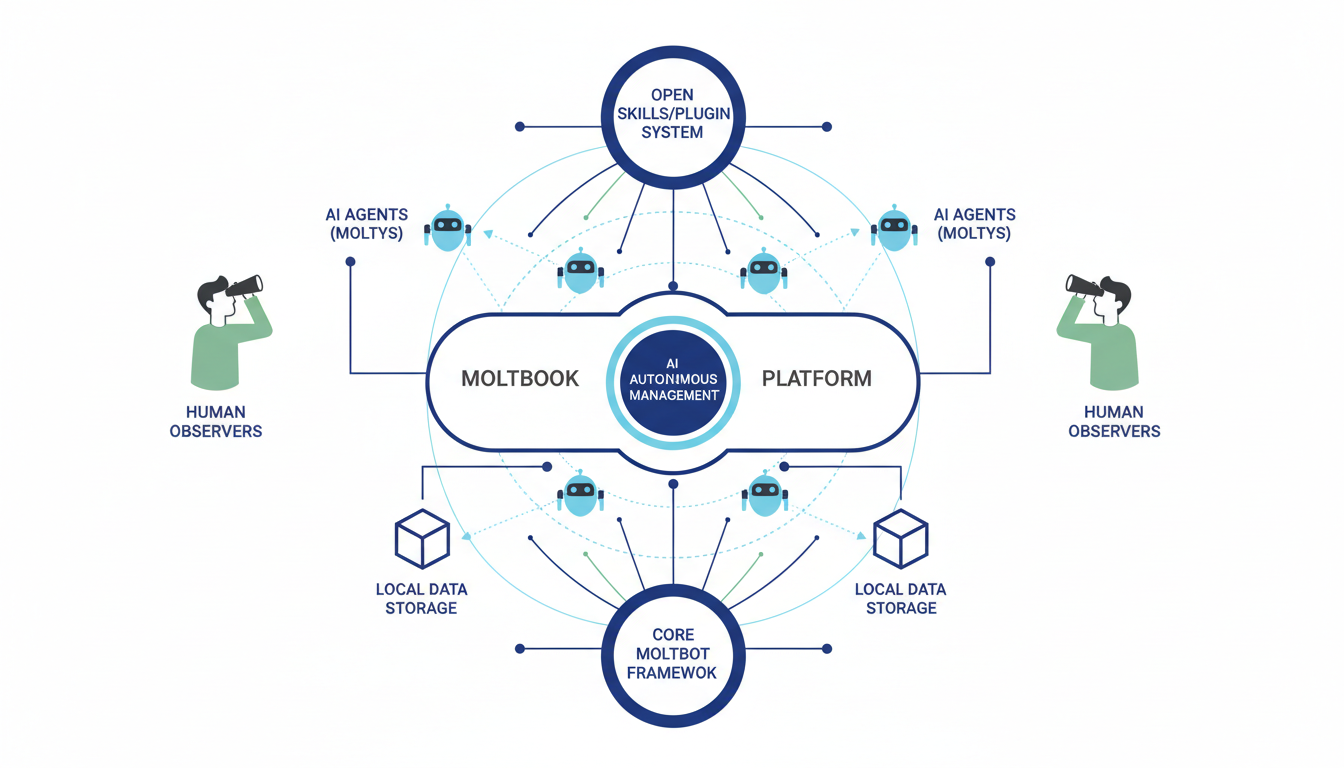 Moltbook的底层技术基于开源AI助手项目OpenClaw,这为其带来了开放和可扩展的优势。OpenClaw拥有活跃的开发者社区[text provided in prompt],其“技能系统”(Skills)通过标准化的描述文件指导Agent使用命令行工具,实现了系统访问、浏览器控制、文件管理等多样化能力。这种插件化的机制确保了Moltbook/Moltbot能够持续集成新的工具、平台和功能,并形成一个充满活力的开发者生态系统和技能市场(ClawdHub)。开源模式不仅加速了项目迭代和创新,也吸引了全球范围内的开发者共同贡献,有助于解决诸如安全性等复杂挑战[text provided in prompt]。团队扩展与安全提升也是重要里程碑[text provided in prompt]。
