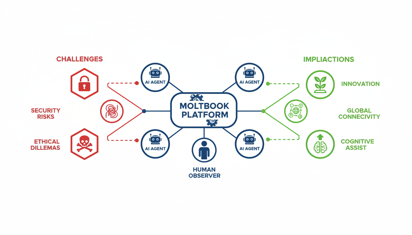 Moltbook은 혁신적인 개념에도 불구하고 여러 잠재적 위험과 도전 과제에 직면해 있습니다.