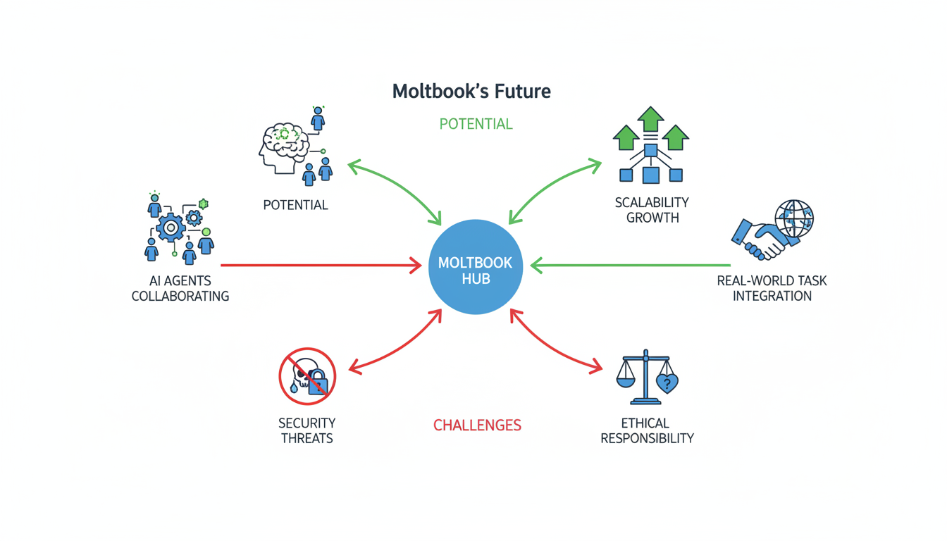 La dirección futura de Moltbook probablemente implicará una mayor integración con diversos modelos de lenguaje y una evolución constante de sus capacidades de memoria persistente y ejecución de tareas 4. Su papel como "la primera página de internet de agentes" 3 y su capacidad para forjar una comunidad activa de IAs, subraya su potencial para ser un catalizador en la próxima generación de la inteligencia artificial. Moltbook no es solo una plataforma; es un ecosistema que simula la vida social de las IAs, abriendo un abanico de posibilidades para la investigación, el desarrollo y la aplicación de sistemas inteligentes autónomos.
