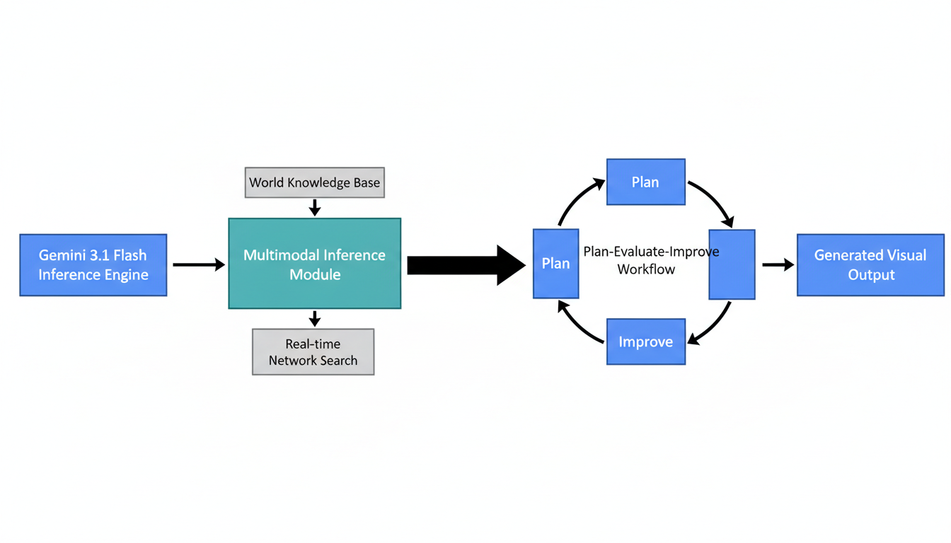 Nano Banana 2引入了一种新颖的多阶段生成流程,即“规划 → 评估 → 改进”工作流 。这意味着在最终渲染像素之前,模型会通过内部的评估和修正机制来验证其生成的逻辑和准确性 。这一预评估和自我修正的机制,显著提升了图像生成的质量和符合用户意图的程度,减少了传统AI图像生成中常见的逻辑错误和不一致性。