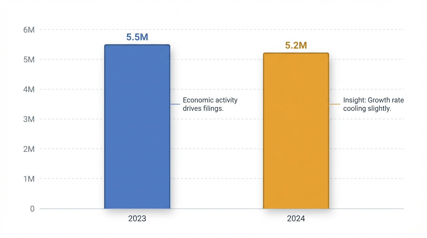 The numbers underscore this profound transformation. More than four out of five small businesses in the U.S. currently operate without employees, a figure projected to rise to 84% by 2025 from 76% in 1997 . New business formation is booming, with 5.2 million applications filed in the U.S. in 2024 alone, following nearly 5.5 million new businesses started in 2023, predominantly solo ventures . This surge translates into substantial economic impact, as 29.8 million solopreneurs collectively contribute $1.7 trillion to the U.S. economy, accounting for 6.8% of total economic activity .