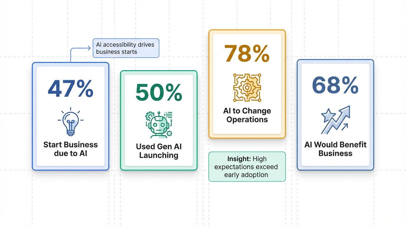 AI's utility spans across the entire business lifecycle. For product development, specialized AI tools can significantly accelerate development cycles, handling tasks from code generation and debugging (like what Cursor might offer) to design automation and UI prototyping (similar to v0 or Lovable). AI also assists with content generation and data analysis 7. In marketing and customer operations, it powers intelligent chatbots and automates outreach, freeing up crucial time. Indeed, roughly half of new solopreneurs in 2024 utilized generative AI when launching, primarily to save precious time 2.