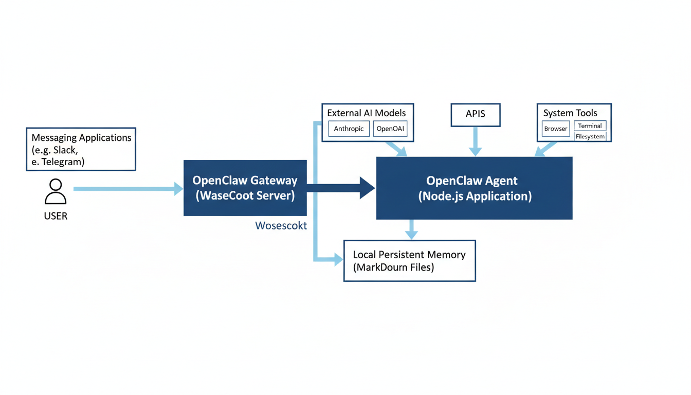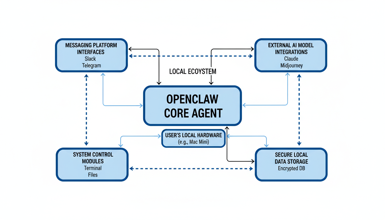 A diferencia de los chatbots reactivos, OpenClaw actúa como un agente de IA autónomo capaz de ejecutar tareas de forma proactiva, establecer objetivos, recordar el contexto a lo largo del tiempo, iniciar comunicaciones y continuar funcionando sin conexión2. Este "salto definitivo" de los chatbots tradicionales a agentes autónomos define su novedad4. El proyecto se distingue por ser una solución autoalojada, operando directamente en el hardware del usuario, como Mac Mini, servidores Linux o Raspberry Pi2. Este principio de autoalojamiento garantiza un control total sobre los datos y operaciones, operando bajo el lema "Tu asistente. Tu máquina. Tus reglas"3. De esta manera, OpenClaw mantiene los datos locales y bajo el control del usuario, mejorando la privacidad frente a los asistentes basados en la nube como ChatGPT o Claude2. Toda la configuración y el historial de interacciones se almacenan localmente en la máquina del usuario (por ejemplo, en ~/.openclaw/), asegurando la persistencia y que los datos sensibles nunca abandonen su infraestructura1.