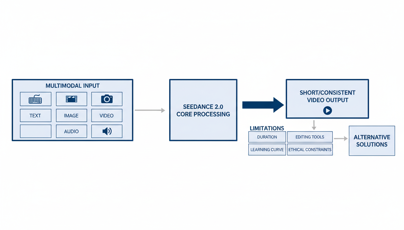 Despite these powerful advancements, Seedance 2.0 presents certain limitations that lead users and creators to explore alternative solutions. The model is primarily optimized for short, controlled clips, typically generating videos between 4 to 15 seconds . This focus makes longer single-pass storytelling challenging and often requires manual stitching of multiple clips, which can sometimes result in visible "seams" and affect overall continuity .