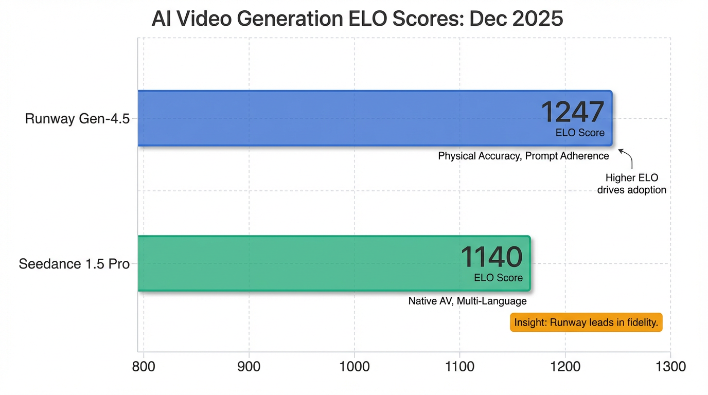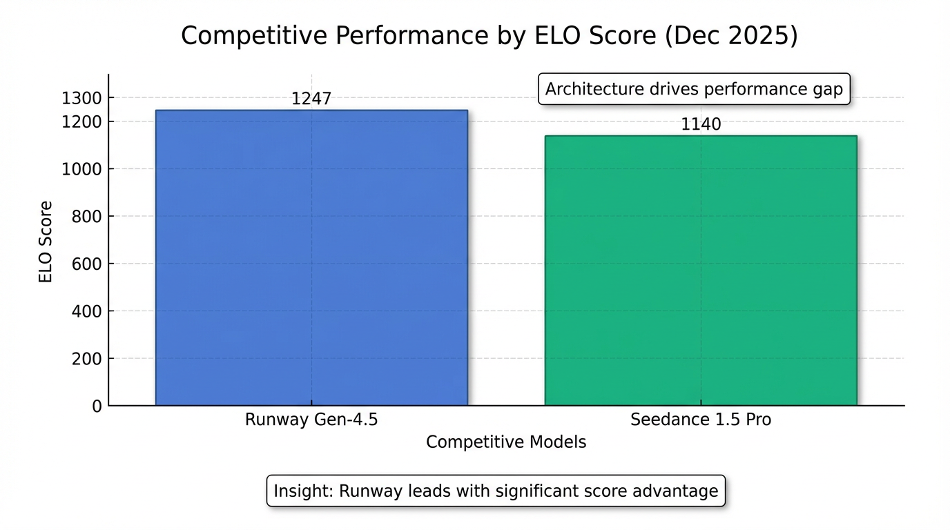 The advanced AI video generation market of 2026 is highly competitive, with Seedance 2.0 positioned alongside prominent models like OpenAI's Sora 2, Google DeepMind's Veo 3/3.1, and RunwayML's Gen-4.5. While Seedance 1.5 Pro already demonstrates strong capabilities with its Dual-Branch Diffusion Transformer and millisecond-precision audio-visual synchronization, achieving an ELO score of approximately 1140 in December 2025, Seedance 2.0 represents a significant leap 12. This section provides a detailed comparative analysis across key parameters to highlight the distinct advantages and strategic positioning of each model.