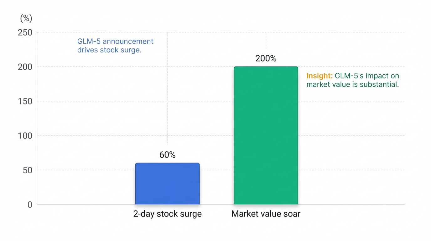 The mere anticipation and subsequent 'stealth' launch of GLM-5, initially codenamed 'Pony Alpha,' led to a dramatic surge in Zhipu AI's market valuation. News confirming 'Pony Alpha' as GLM-5 on February 10, 2026, saw Zhipu AI's stock price cumulatively rise 60% in just two days, pushing its market capitalization beyond HKD 150 billion 4. Some headlines even reported a 200% market value increase, securing Zhipu AI's top position in domestic AI .